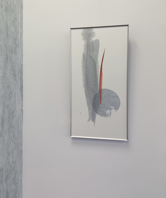 書家( アーティスト )は、長い年月をかけて身体に刻まれたリズムと呼吸で一瞬に集中して和紙と向き合います。